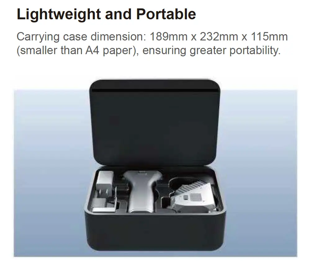 Weight 0.65 kg (Scanner) 1.16 kg (With battery and base)
