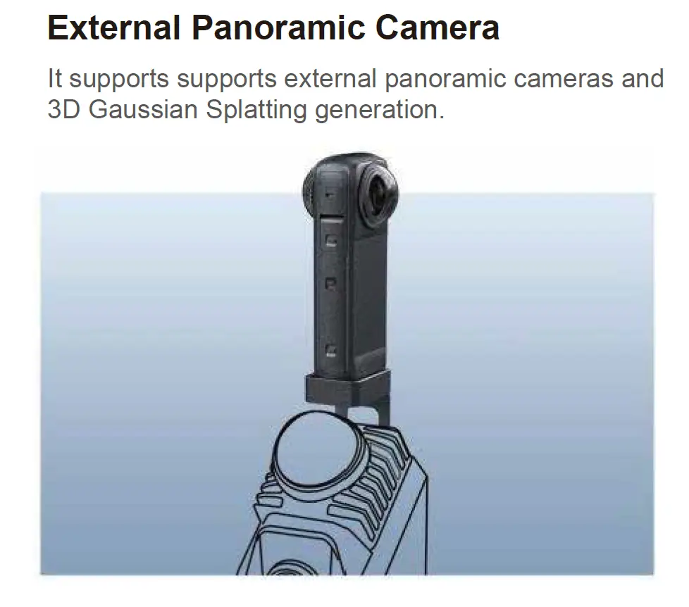 • Supports external panoramic camera workflows, including emerging 3D Gaussian Splatting (3DGS) generation